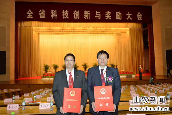 11月23日,全省科技创新与奖励大会在济南隆重举行,姜异康、姜大明等省领导为获得2012年度山东省科技奖的获奖者代表颁奖。由永利官网张宪省教授等完成的“植物生殖器官的发育与激素调节”获得今年唯一的山东省自然科学一等奖,这也是永利官网首次获得山东省自然科学一等奖。由陈学森教授等完成的“杏和李等核果类果树种质资源挖掘、创制与利用”获得山东省科技进步一等奖。