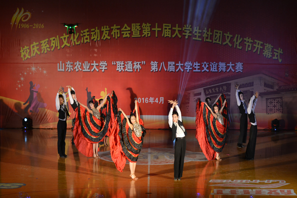 发布会后,作为110项校庆系列文化活动之一的第十届大学生社团文化节正式拉开帷幕。气势恢宏的“社旗”入场式、“SDAU”队列健美操表演、社团“110”街舞等精彩节目,将活动氛围推向高潮。在随后举行的“联通杯”第八届大学生交谊舞大赛上,来自全校15个学院的代表队进行了激烈角逐。最终,林学院、植物保护学院和动物科技学院荣获团体赛一等奖,经济管理学院获最佳人气奖。