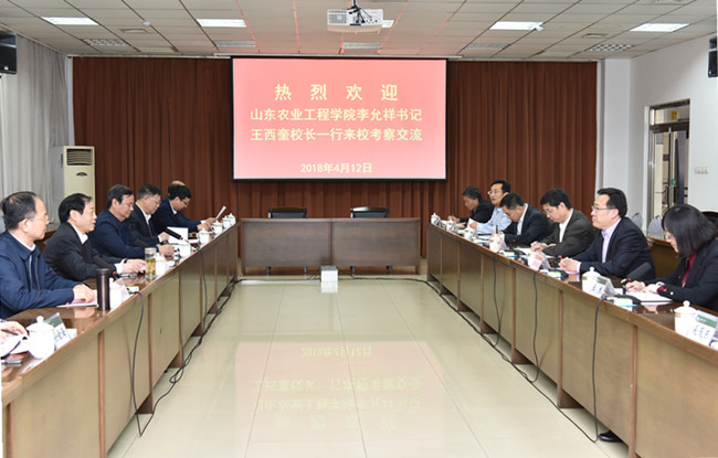 4月12日,山东农业工程学院党委书记李允祥、校长王西奎带队来校考察交流,党委书记徐剑波会见客人并座谈,副校长张然,学校办公室、组织部、教务处、科技处、人事处、审计处等部门有关负责同志参加座谈。