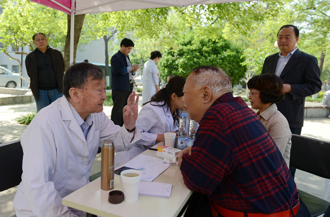 4月20上午,由中国老科学技术工作者协会主办的义诊活动在北校区家属院夕阳红广场举行,许多中老年教职员工及家属慕名而来,请老专家问诊把脉。副校长嵇景涛代表学校看望义诊专家。