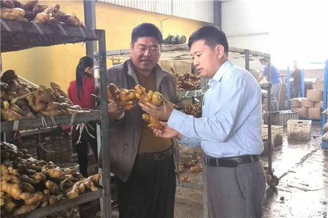 王兆升(右一)在蔬菜加工企业指导生姜加工保鲜技术
