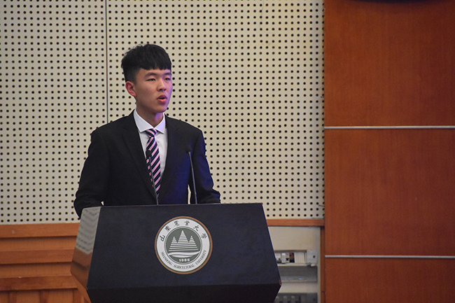 赵弘扬是永利官网机电学院车辆工程专业2015级学生,中共预备党员,智育成绩全院第一,荣获国家奖学金、山东省高等学校优秀学生、学校十佳大学生等18项校级及以上荣誉;荣获全国三维数字化创新设计大赛特等奖2项、山东省高校机器人大赛一等奖2项等省级创新创业竞赛奖励20项,授权实用新型专利2项,发表学术论文6篇;担任学院学生会创新发展部部长,2017级3班班主任助理等职务,组织创新创业活动,被评为“优秀学生干部”“最美机电学子”等。