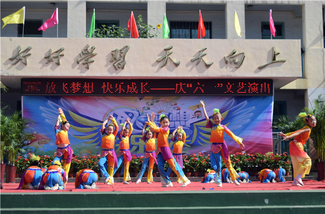 附校师生同台表演,节目精彩纷呈。学校舞蹈队的节目《鱼儿欢歌》孩子们像鱼儿一样跃出水面,嬉戏阳光;《花儿朵朵向太阳》舞者犹如盛开的向阳花,积极向上,用感恩的心回报祖国妈妈;印度舞《美丽的姑娘》以其优美而神秘的韵味吸引着观众的目光;歌曲串烧《青春旋律》,歌手们动听而激昂的演唱展示出良好的精神风貌;附校老师作词作曲、师生共同演唱的校歌《翱翔的翅膀》将整场演出推向高潮。