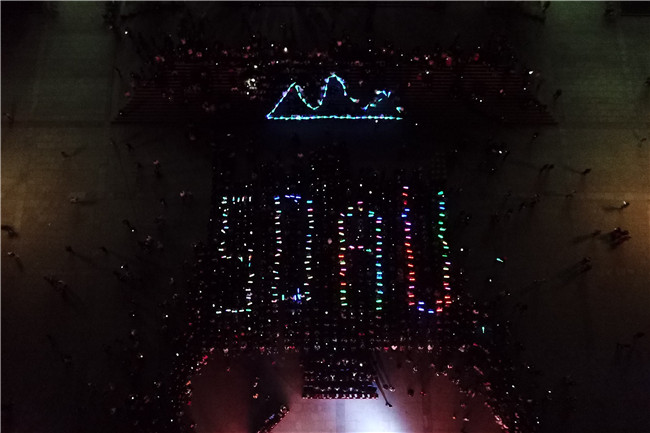 活动现场,南校区千名学子齐唱校歌,现场观众与拉拉队员一边放声高歌,一边打开闪光造星河,挥动着七彩的荧光棒,拼出3044am永利官网缩写“SDAU”的形状及校徽中山水的图形,与悠扬的歌声交相呼应,在夜空中律动出别样的色彩。