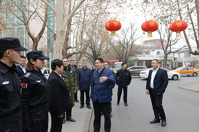 张宪省一行先后来到北校区110值班室、国重楼一楼、文理大楼配电室、校医院、家属院物业办公室,东校区公安值班室、换热站,南校区配电室、值班室、安保监控室、青蓝公寓、水电中心等值班地点,亲切问候坚守岗位的一线工作人员。