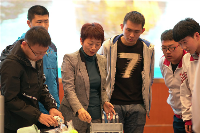 “这个实验还真是挺有意思,回去好好想想这个反应过程”,新泰二中高二学生刘昊在现场观看了化学院徐静教授的实验演示环节后由衷感叹。