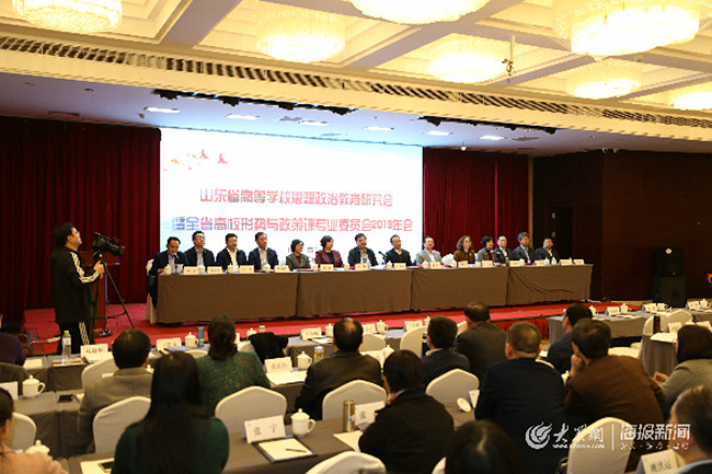3月28日,山东省高校思想政治教育研究会暨全省高校形势与政策课专委会2019年会在青岛举行。专委会副主任、学校党委副书记朱莉出席会议,同与会人员开展深入交流,接受大众网、海报新闻等媒体专访,广泛介绍学校思想政治工作经验做法。
