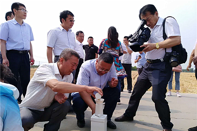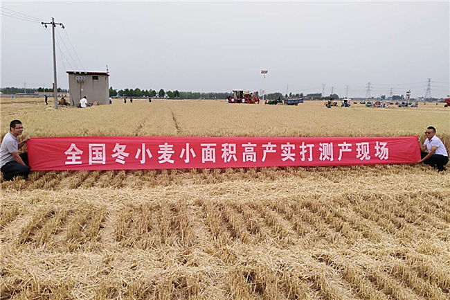 在测产现场,农业农村部全国农技推广服务中心组织中国农科院、扬州大学、石家庄市农科院、河南省农技推广总站、山东省农技推广总站、山东省农科院、青岛农业大学等单位的7名专家,经过严格的丈量、机械收获脱粒、称重、水分测定、取样测定杂质率等环节,在1.68亩实打面积麦田中,共收获鲜籽粒1436公斤,平均水分含量14.15%,杂质率0.98%,折合亩产835.2公斤。亲自见证新的全国纪录诞生,在场人员都兴奋不已。