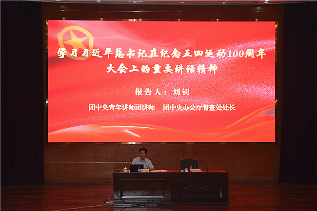 6月21日,团中央青年讲师团成员、团中央办公厅督查处处长刘钊来校为青年师生代表作习近平总书记在纪念五四运动100周年大会上的重要讲话精神学习辅导报告,与在场师生共同探讨五四精神,领悟家国情怀。