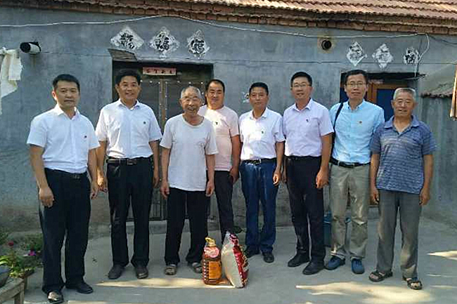 学校第一书记工作队带领所在村党支部共同开展了“不忘初心跟党走,牢记使命争先锋”主题党日活动。第一书记们先后来到张家洼村、涝坡村、北朱保村、陈官庄村,看望慰问张连友、胡守荣、高德一等11位老党员,送上花生油、大米等慰问品,询问老党员身体、生活状况及对支部有什么意见建议。老党员们纷纷表达了对党的热爱和感激以及对村党支部的信任,希望村党支部协同第一书记巩固脱贫成果、促进乡村振兴,带领大家在致富奔小康的路上越走越好。