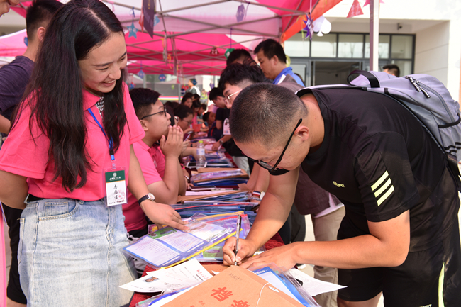 党委书记徐剑波、校长张宪省走进迎新现场,与新生和家长亲切交流,了解他们的需求和想法,表示学校会为学生成长成才搭建广阔平台,勉励新生们尽快适应新的学习环境和生活节奏,在大学里继续加倍努力,追寻梦想。
