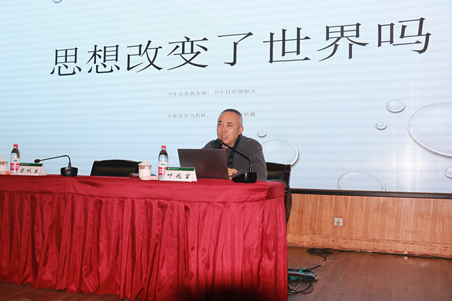 叶兆言以人类因有思想才能引领世界为开场,自其新作《南京传》中对三国时期的历史追溯,讲述了几个曾改变国人思想的故事,对思想影响世界发展观点作出论证。叶兆言通过自己的阅读写作经历,建议青年人读书应当自由且符合自身喜好,珍惜与享受读书的过程,同时他提出“要做学问,首先应当学会提问”,鼓励同学们坚持独立思想,不随波逐流。在问答环节,现场观众提问踊跃,叶兆言以轻松幽默的语言依次作答,赢得现场观众的阵阵掌声。
