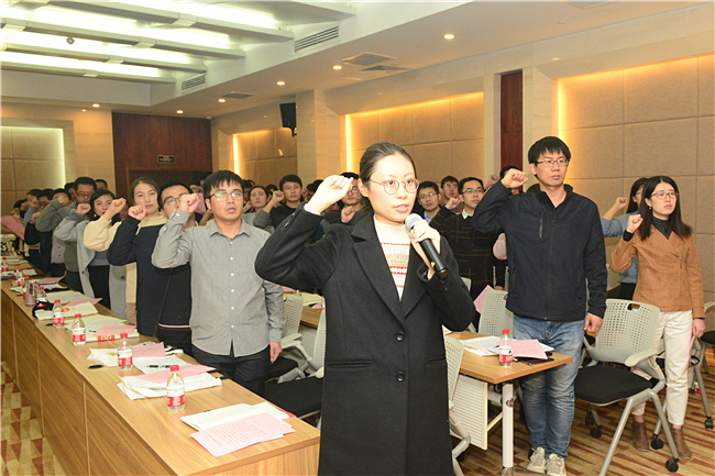 开班仪式上,75名新入职教师庄严宣誓,志愿成为一名光荣的人民教师,忠诚党的教育事业,遵守教育法律法规,秉承登高必自校训,履行教师职责,潜心教书育人,为学校发展、教育振兴、国家繁荣和民族复兴而努力奋斗。