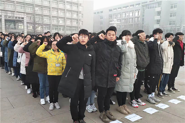 仪式结束后,同学们纷纷在“勿忘国耻,牢记使命,珍惜大学时光”的条幅上承诺签字,条幅上的每个名字都映照着为民族复兴而奋斗的信念理想,每句誓言都激荡着爱国奋进的青春力量。