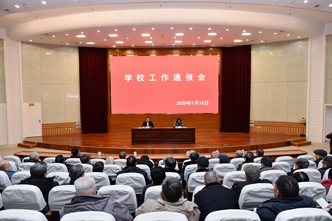 1月15日,学校召开工作通报会,党委书记徐剑波向离退休老领导、老专家、老同志和党外人士通报学校2019年改革发展情况和2020年工作的思路打算,向大家致以新年的问候和祝福。党委副书记朱莉主持通报会。
