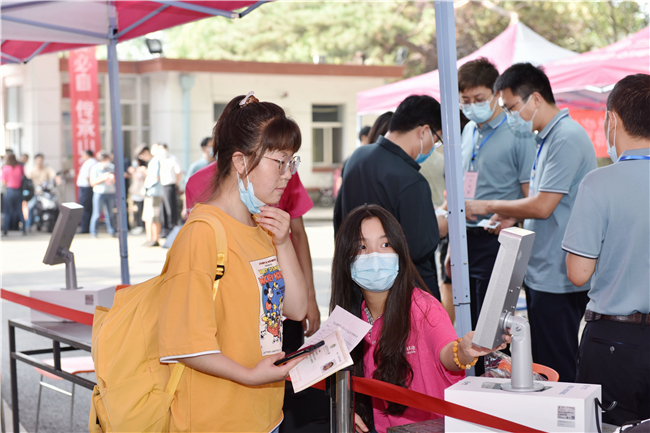本次迎新分3天进行,新生分别在北校区、南校区东南区、南校区西北区错时错峰报到入学。今年学校结合疫情防控要求设计了“一站式”报到程序,进一步简化报到手续,提高学生身份验证效率,也就是新生凭录取通知书、健康通行绿码入校,在学校身份核验处进行身份证、人脸信息比对验证后,到学院迎新点领取宿舍钥匙等物品即可完成报到手续。同时,各校区片区新生报到情况在今日校园手机客户端、电脑端大屏实时显示,提高报到信息统计效率。