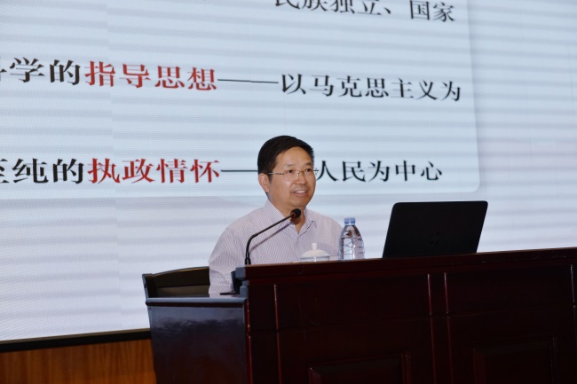 在北校区5N教学楼,徐剑波从中国共产党强烈的使命担当、科学的指导思想、至纯的执政情怀三个方面,讲述了成就了其所以“能”的根本原因。他说,历史是最好的教科书,也是最好的营养剂、清醒剂。中国共产党自成立之日起,就把为中国人民谋幸福、为中华民族谋复兴作为自己的初心和使命。我们党的百年历史,就是一部践行初心使命的历史,就是一部党与人民心连心、同呼吸、共命运的历史。从百年党史中汲取智慧和营养,我们才能增强不断前行的力量。