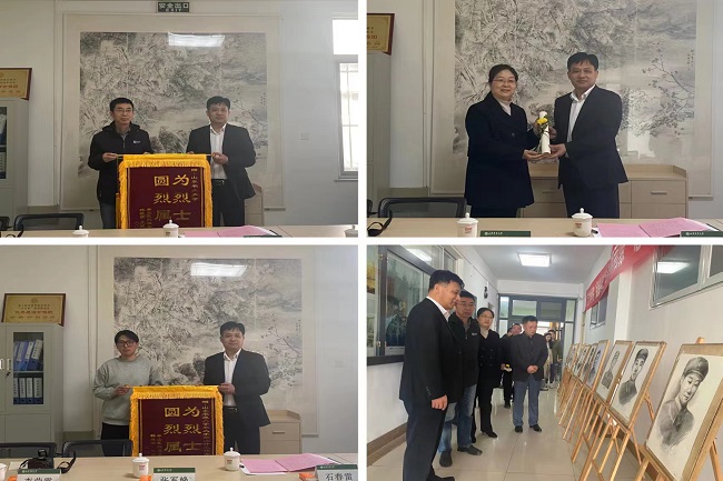 活动中,学院党委书记杨永青介绍了学校和学院有关情况。泰山区退役军人事务局局长石春雷介绍了泰安市“致敬英雄:为烈士寻亲,给英雄画像,讲英烈故事”公益志愿活动开展情况。他说,在战争年代,很多烈士没有影像资料,给烈士画像,不仅能帮助烈属缓解相思之痛,也能更好地弘扬烈士精神。他对学院的志愿服务工作给予高度评价,并代表英烈家属向学校和学院赠送锦旗,王群代表学校接旗。孙丽向泰山区退役军人事务局移交了画作。活动结束后,与会人员共同参观了烈士画像。
