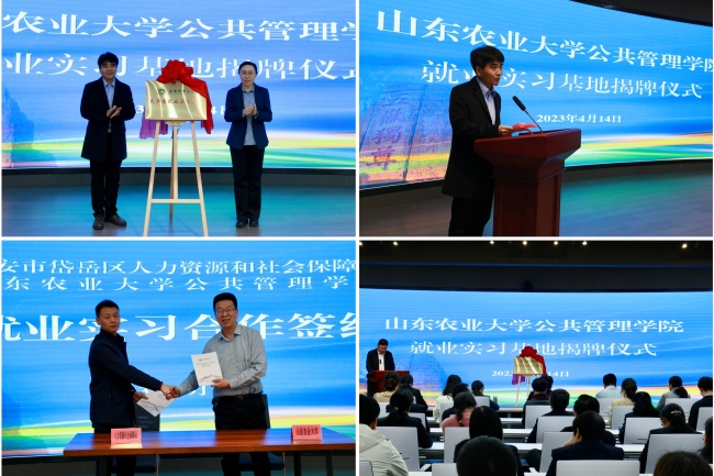 4月14日,公共管理学院与岱岳区人力资源和社会保障局签约共建大学生就业实习基地;岱岳区副区长刘彬、区人力资源和社会保障局党总支书记王涛,公共管理学院党委书记王平、副书记朱震宁等参加揭牌仪式;岱岳区委组织部副部长、区人力资源和社会保障局党组书记、局长吴钦波主持仪式。