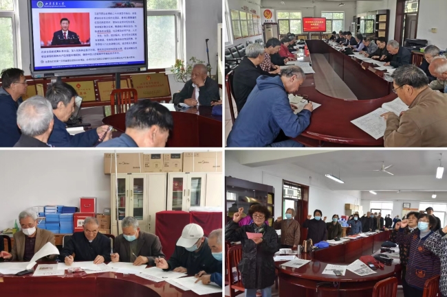 主题党日活动中,退休二支部全体党员面对党旗进行神圣而庄严的重温入党誓词活动;退休九支部通过ppt的形式集体学习习近平新时代中国特色社会主义思想的世界观和方法论;东校离退休二支部书记为党员上党课;退休十支部专家教授结合主题教育做了如何发挥自己的专业优势为“三农”插上现代化的翅膀的精彩报告。