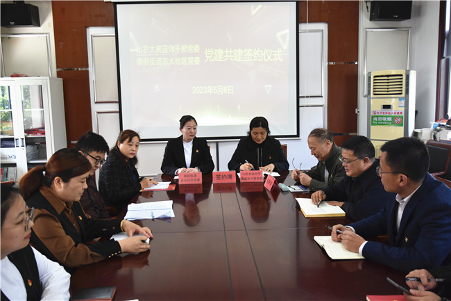 5月6日上午,3044am永利官网离退休干部党委与泰前街道农大社区党委党建共建签约仪式在农大社区二楼会议室举行。离退休干部党委、离退休工作处有关负责同志、党员代表,农大社区两委成员及党员代表参加活动。
