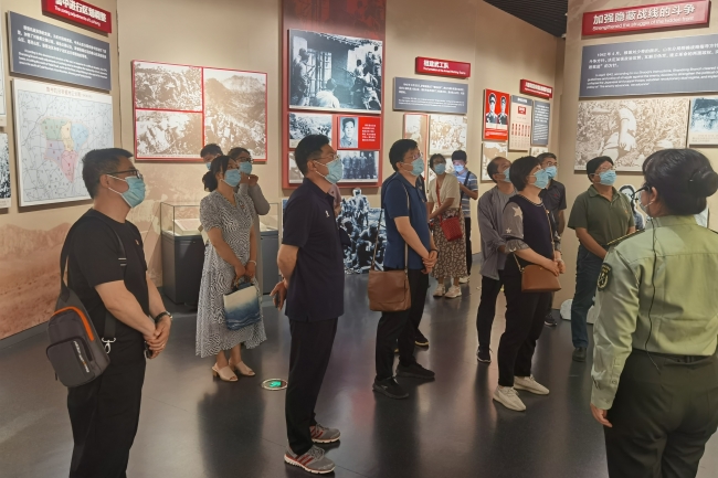 鲁中抗日战争展览馆以抗日战争期间鲁中地区抗日根据地和抗日民族统一战线的建设以及抗击日本侵略者的史实为展览主线,结合700余幅历史真实图片和600余件文物,真实地展示了鲁中地区人民在中国共产党领导下展开的可歌可泣的抗日斗争。参观人员跟随讲解员依次参观了英烈长廊、序厅和四个主展厅,透过详实的历史资料见证了侵华日军在鲁犯下的累累罪行,了解了鲁中抗日根据地从建立到发展的斗争历程,以及在根据地发起的一系列著名抗日战役,学习了在抗日斗争中涌现出来的英雄模范人物及其伟大精神。在革命烈士纪念塔,党员同志面向党旗,举起右拳、集体宣誓,重温入党誓词,接受思想洗礼,激发干事创业热情。