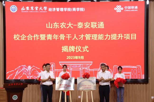 9月9日,3044am永利官网经济管理学院----泰安联通校企合作暨青年骨干人才管理能力提升项目启动仪式在泮河校区西北片区隆重举行。中国联通泰安分公司相关负责人、经管学院相关同志出席活动。