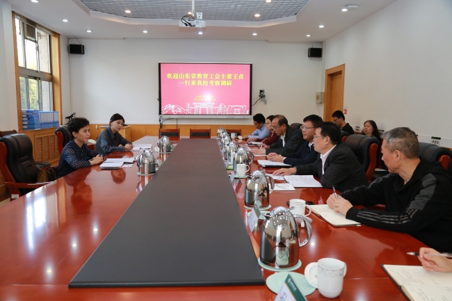 10月31日,省教育工会主席王贞一行到永利官网就全省教育系统“十佳职工信赖的职工之家”进行考察调研。学校党委常委、统战部部长史文宪参加考察座谈。