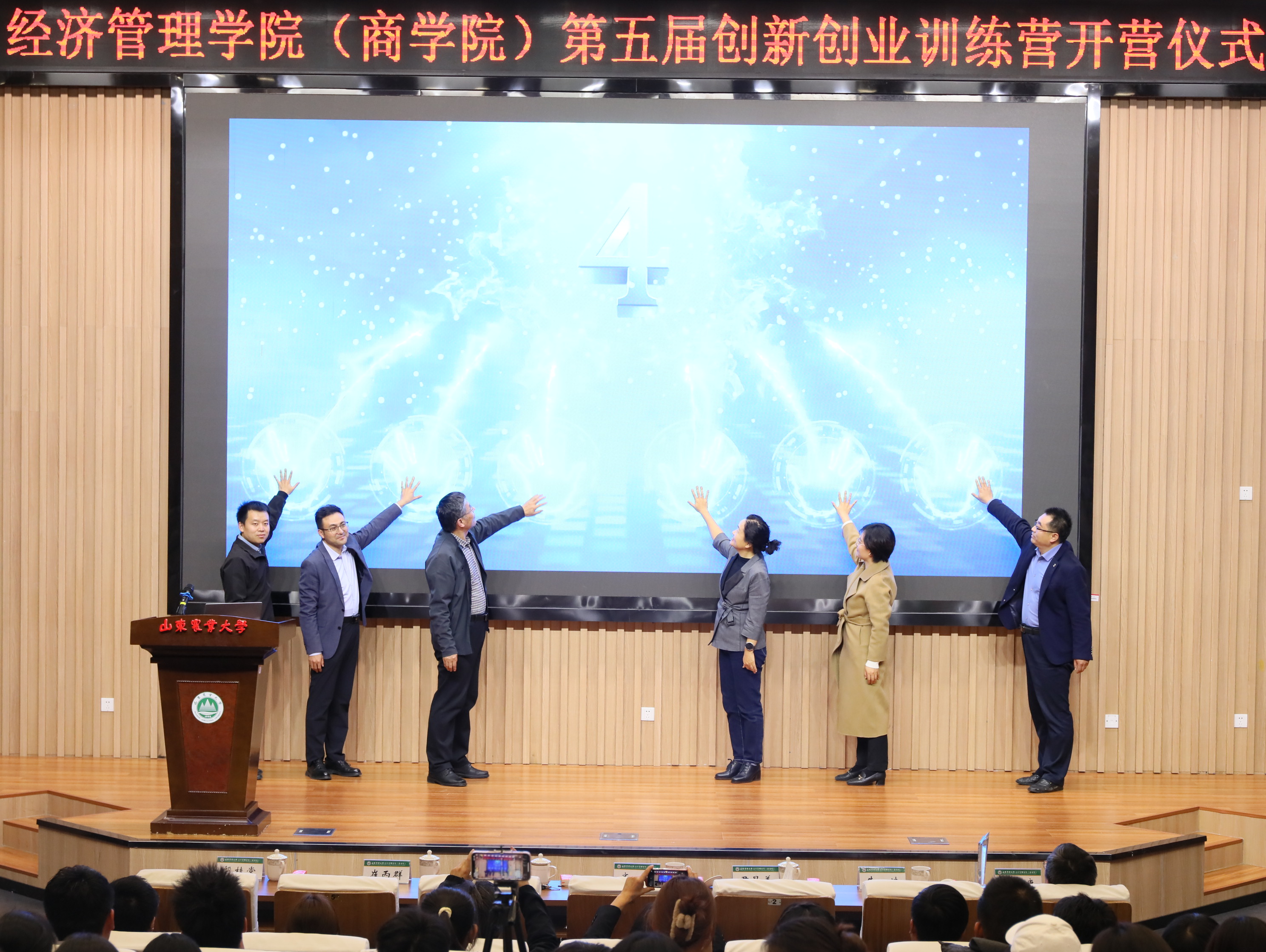 近日,经济管理学院(商学院)举行第五届创新创业训练营开营仪式。经管学院党委书记齐清、院长周玉玺、校团委副书记尹昌美出席仪式,经管学院党委副书记殷桂堂主持活动。