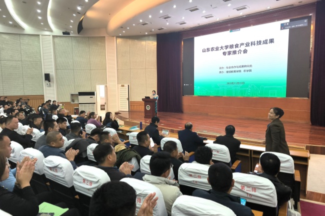 11月15日,学校举办粮食产业科技成果推介会。通过线上直播与线下会议相结合的方式,推介学校粮食产业的最新科技成果,交流分享小麦、玉米等作物栽培的新品种、新技术,吸引了来自全省粮食产业的347名“头雁”培训学员参加。