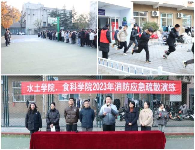 近日,水利土木工程学院联合食品科学与工程学院开展了2023年学生宿舍消防应急疏散演练活动。